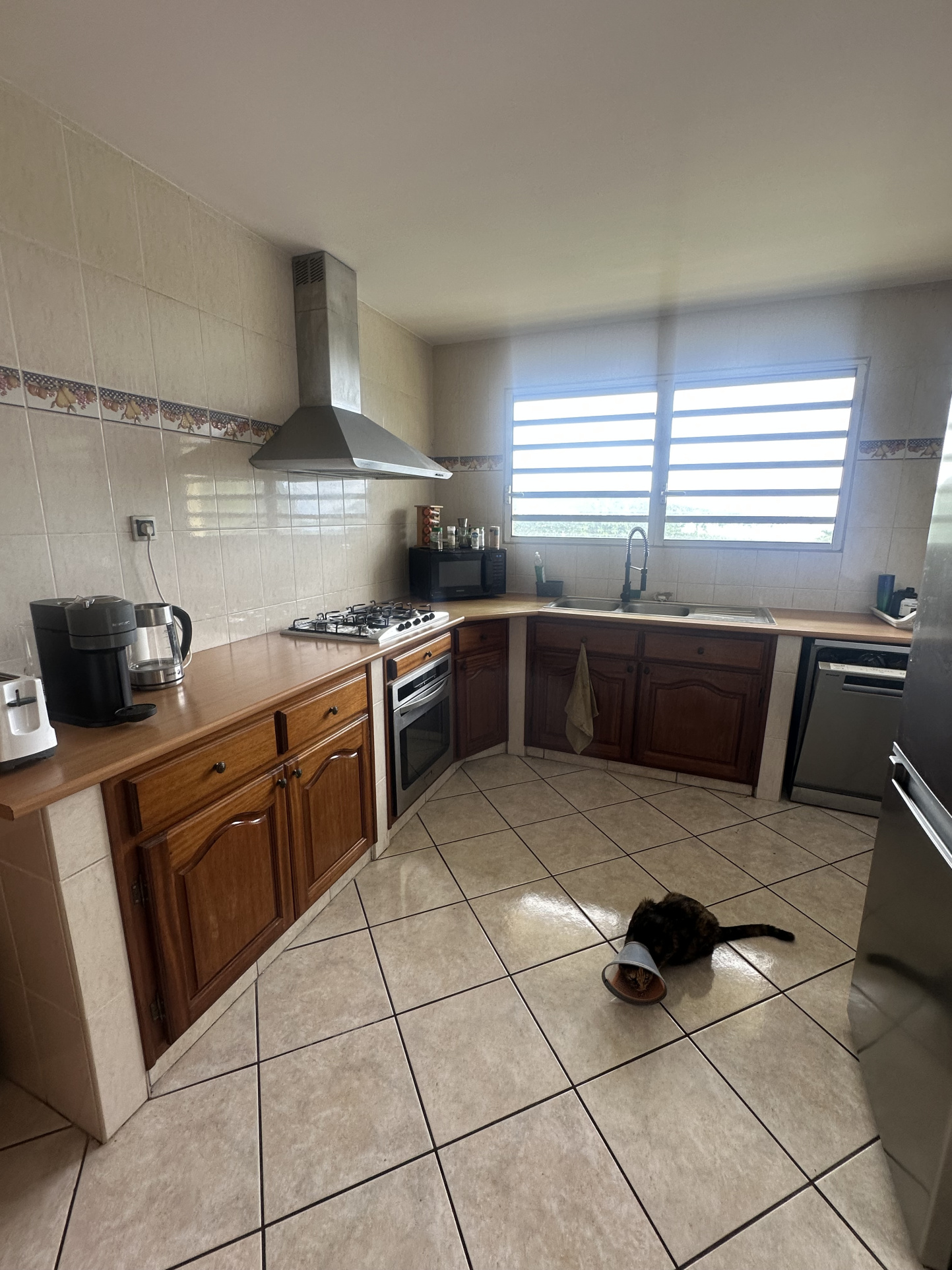 a l'étage : terrasse avec vue mer, séjour, cuisine équipée, 3 chambres, salle de bains,