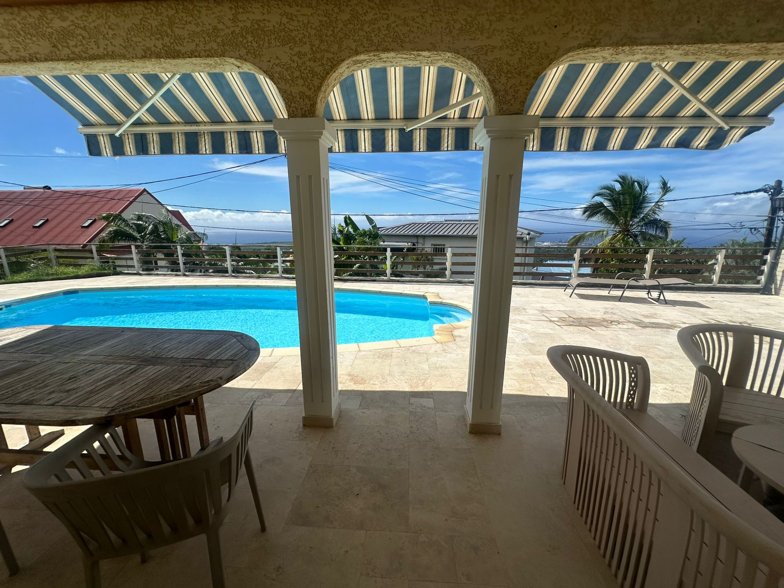 La villa dispose également d'une piscine , d'une terrasse vue mer, d'un jardin arboré sur l'arrière et d'un stationnement 3 voitures.