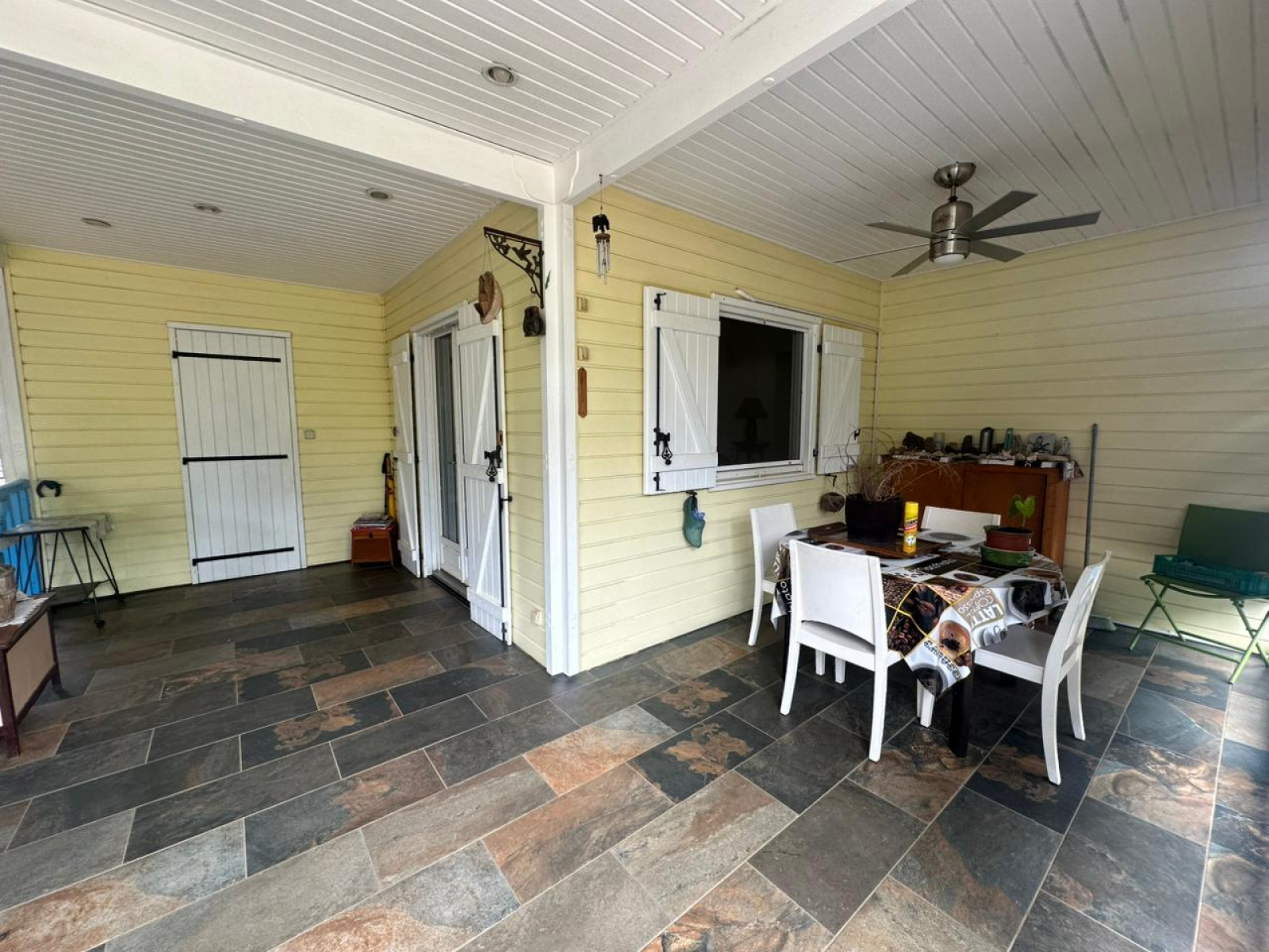 Les extérieurs, soigneusement aménagés, offrent une varangue et une terrasse propices aux moments de détente. Un jardin arboré, agrémenté d’arbres fruitiers, entoure la maison et crée un cadre de vie agréable et verdoyant. Un espace de stationnement au sein de la propriété permet d’accueillir jusqu’à cinq véhicules.