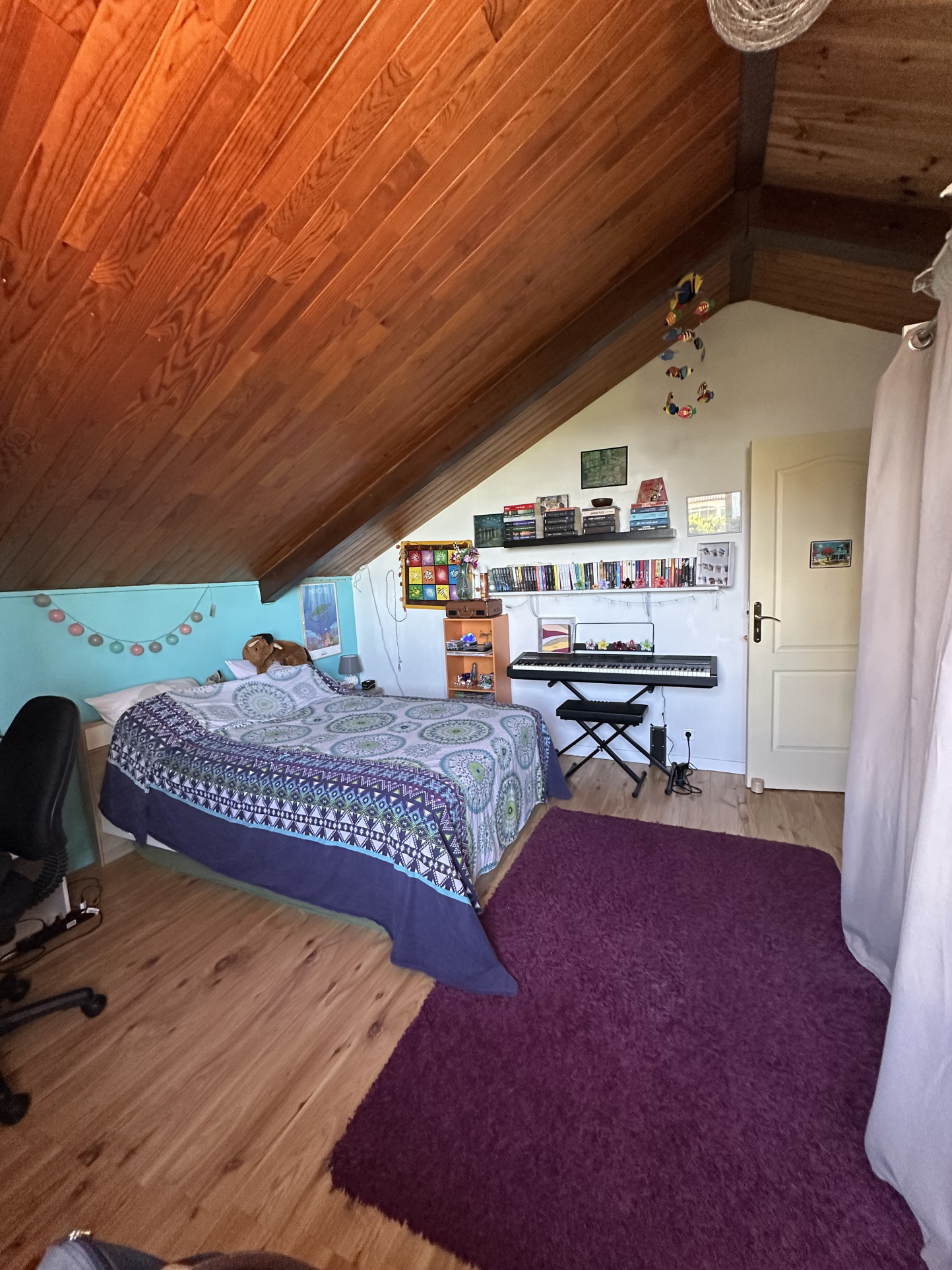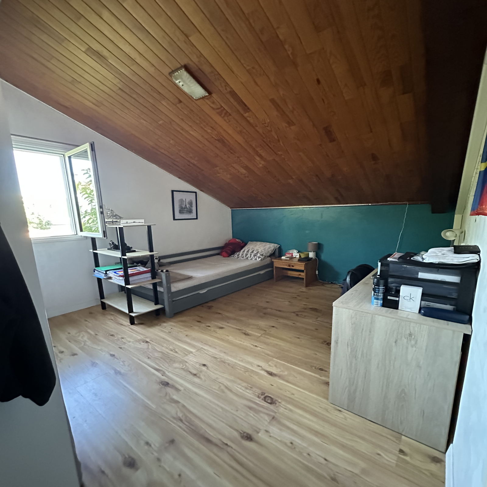 À l’étage, deux chambres supplémentaires, une salle d’eau avec meuble vasque et un WC. Sur le palier un espace dédié au gaming ou à la détente.