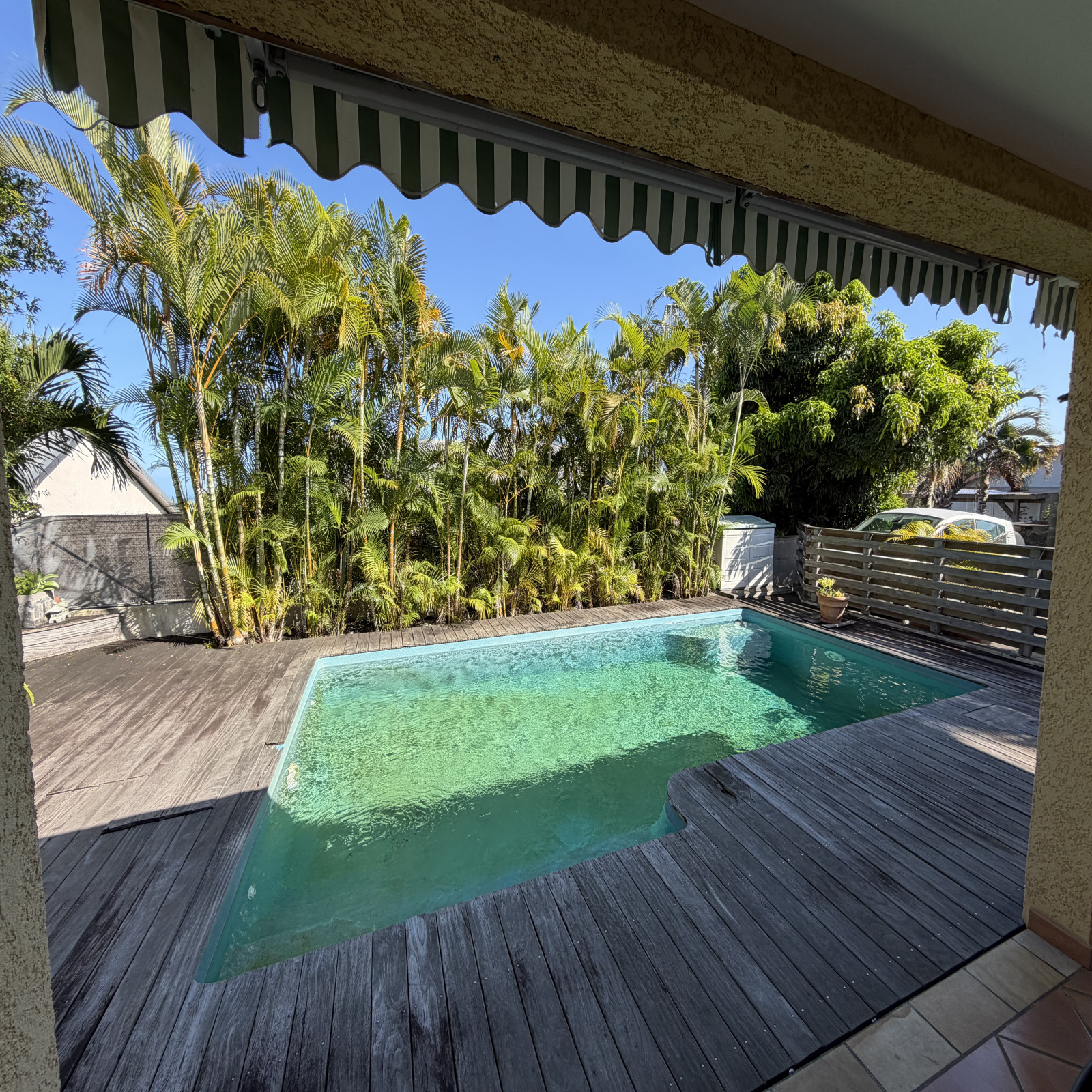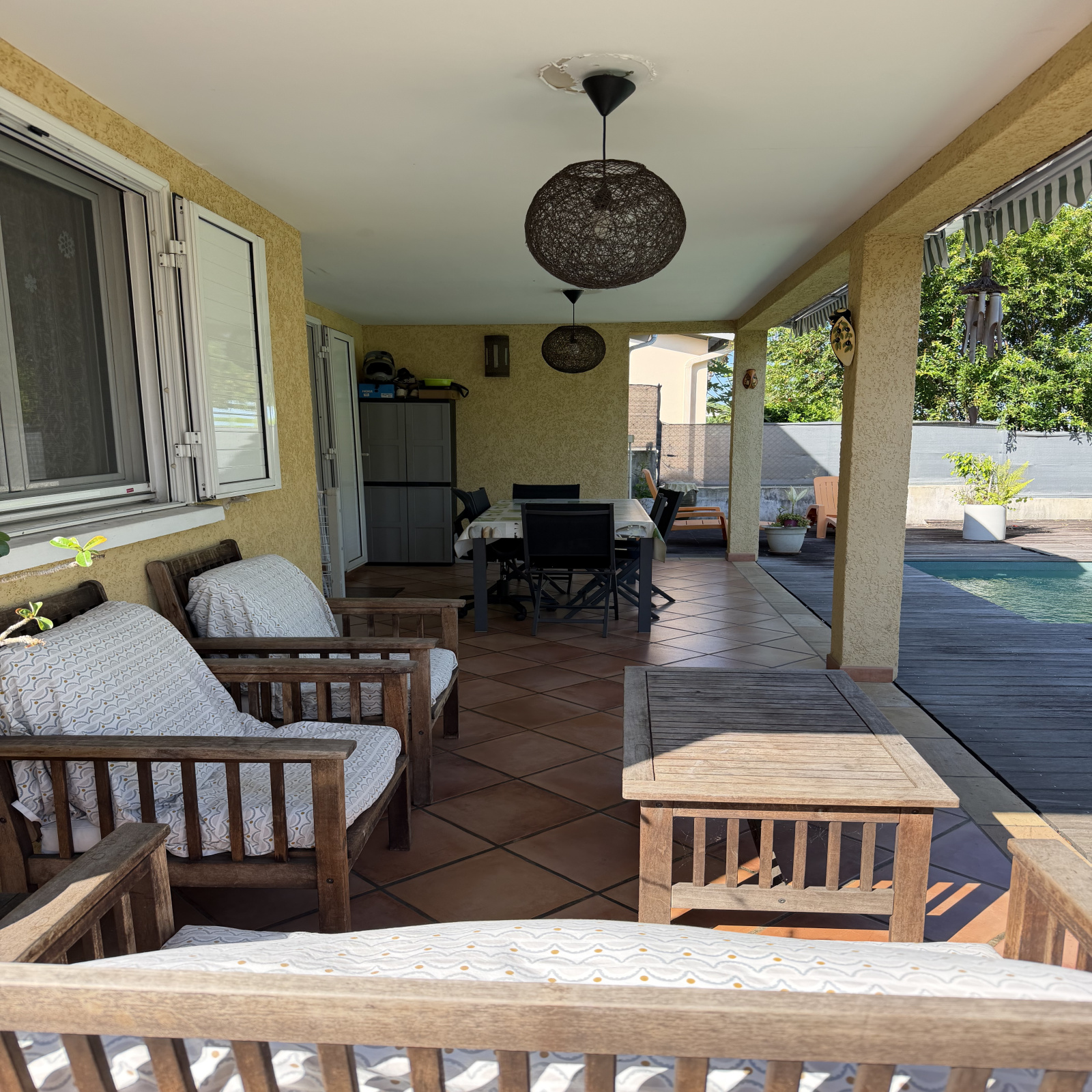 Profitez d'un agréable espace extérieur avec piscine au sel, un abri de jardin.