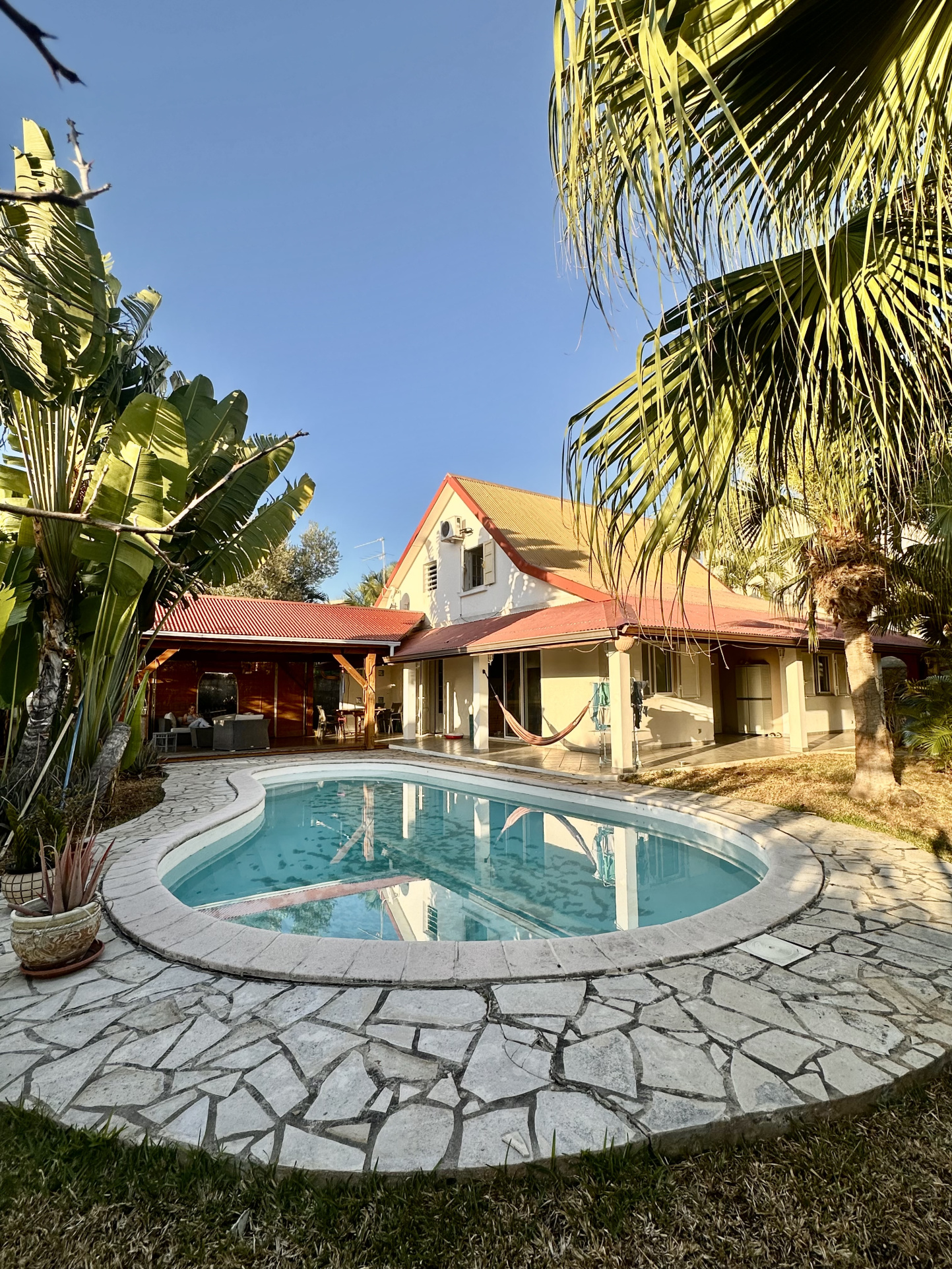 Concernant les exterieurs, la villa dispo d'une grande terrasse avec cuisine creole et d'un jardin piscinable sans vis a vis.