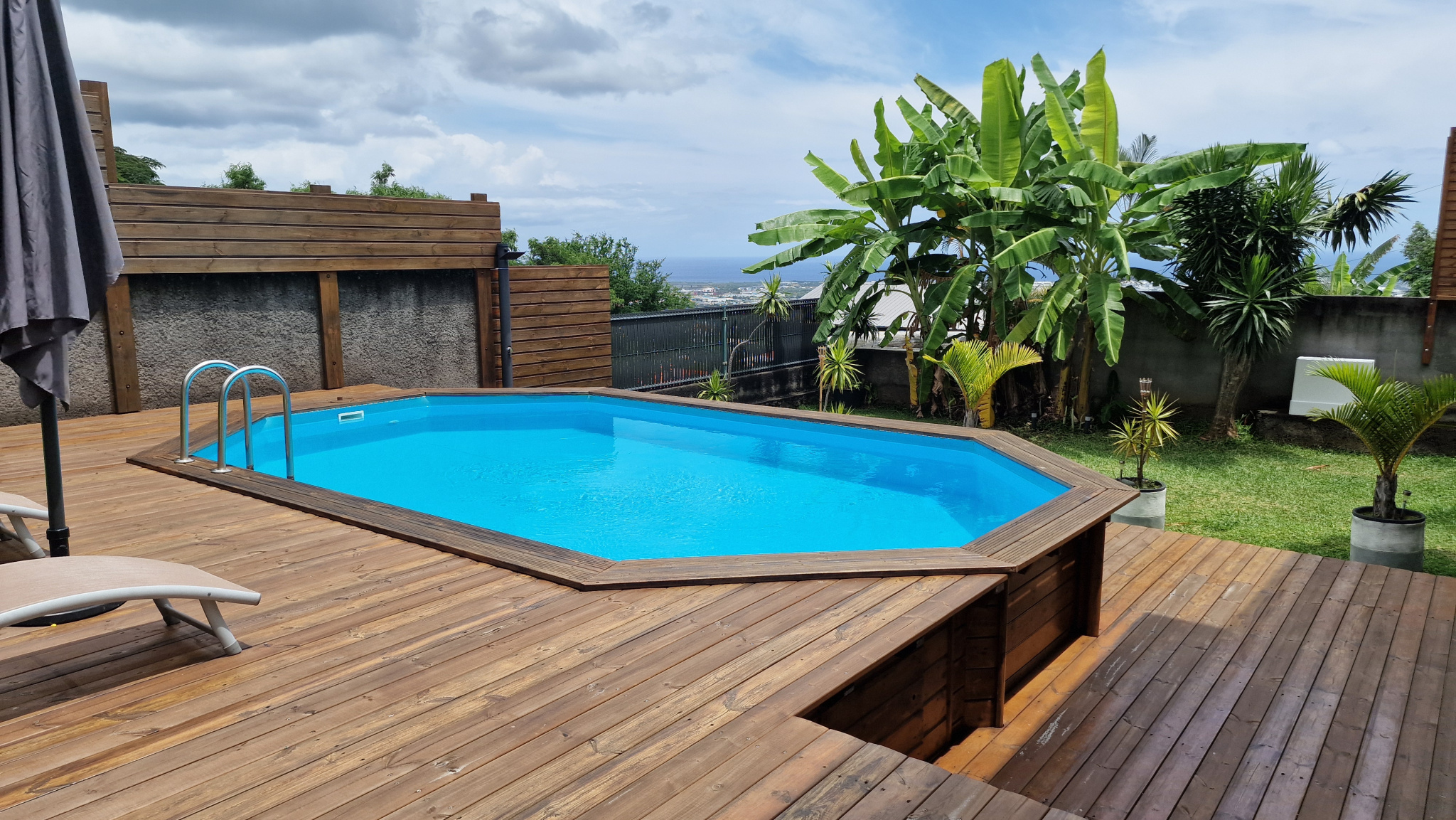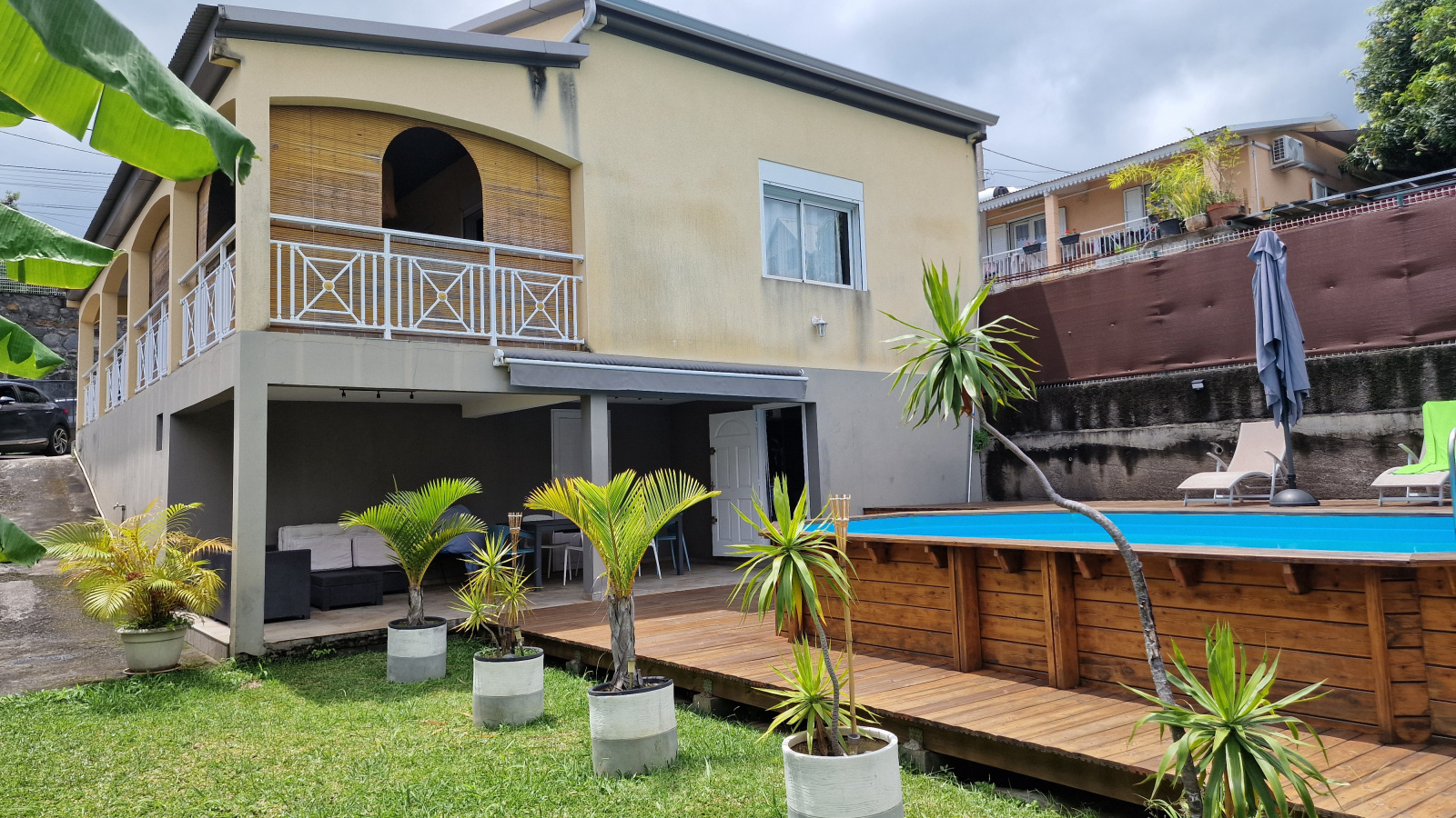 IDSP vous présente cette magnifique villa à la Possession, avec sa cuisine ouverte sur la salle à manger, deux chambres, une salle de bain et une salle d'eau, un WC, une buanderie avec un grand dressing et une varangue de 18,27m2 au rez-de-chaussée. A l'étage l'espace à été aménagée pour offrir une troisième chambre avec son dressing, son WC et un salon. En R -1 se trouve une buanderie de 9m2 ainsi qu'un vide sanitaire de 10m2 pouvant être aménagé. Vous pourez profiter d'une superbe vue mer et les beaux couchés de soleil de l'ile de la Réunion.