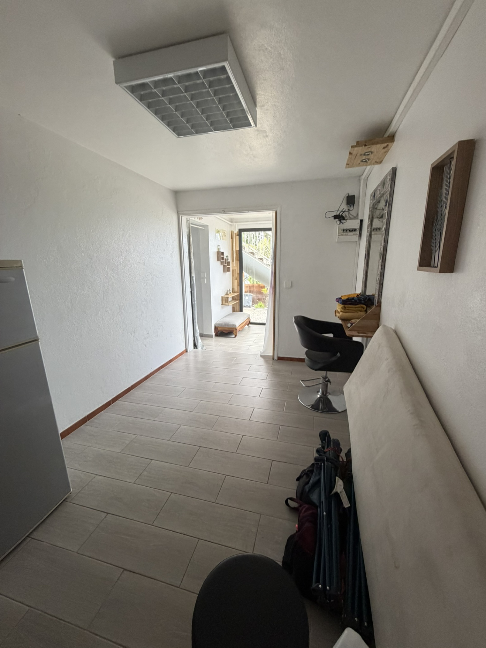 Le rez-de-chaussée propose une chambre, une chambre/bureau traversante idéale pour le télétravail ou une activité professionnelle, une salle de douche avec WC séparés, une pièce semi-aménagée en cuisine, ainsi qu’un accès direct au garage et au jardin.