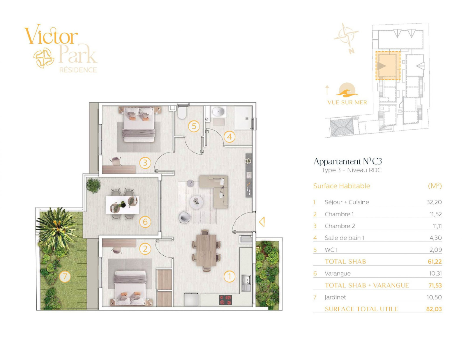 Appartement 3 pièce(s) 2 chambre(s) 61.22 m²