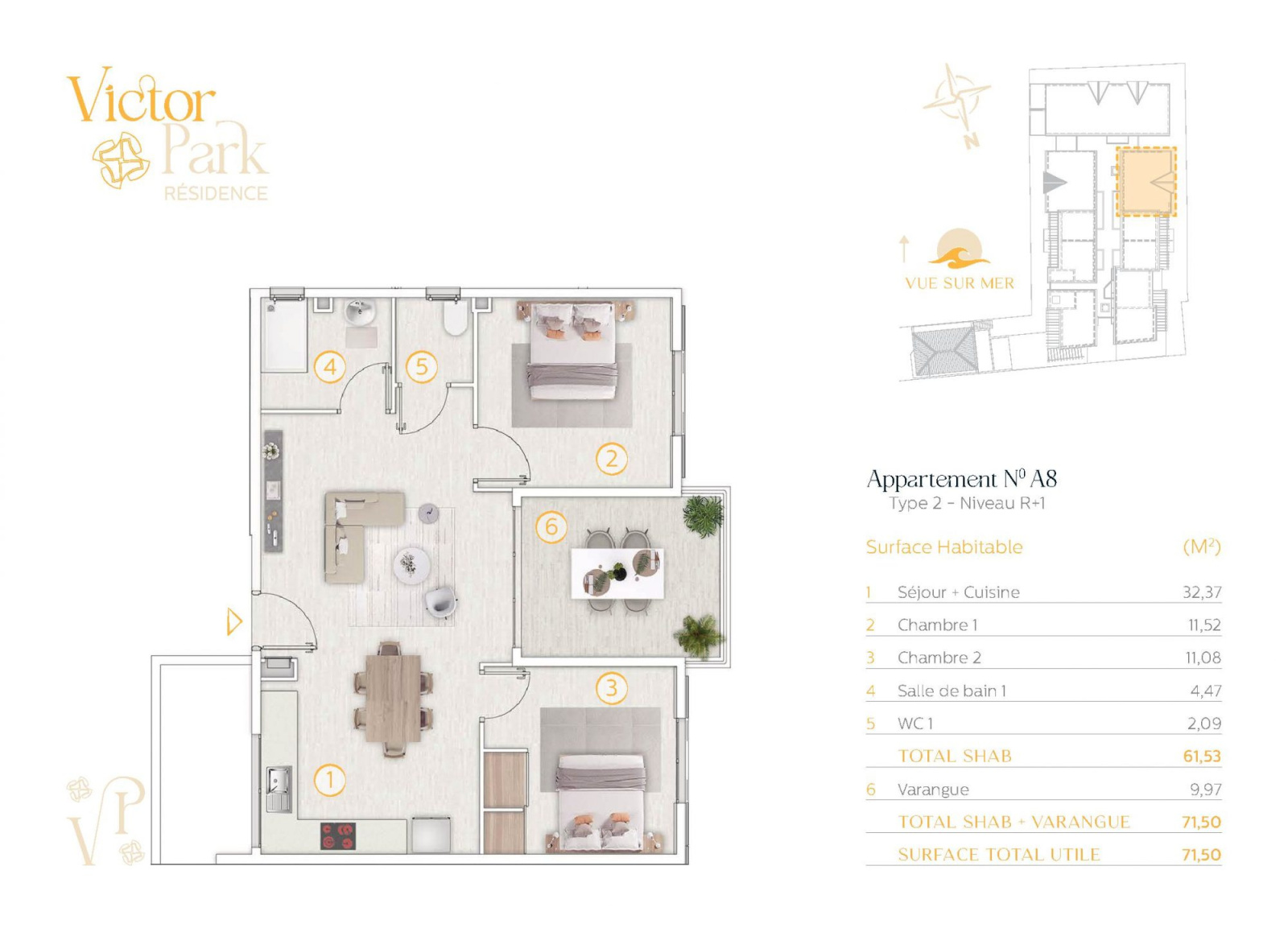 Appartement 3 pièce(s) 2 chambre(s) 61.53 m²