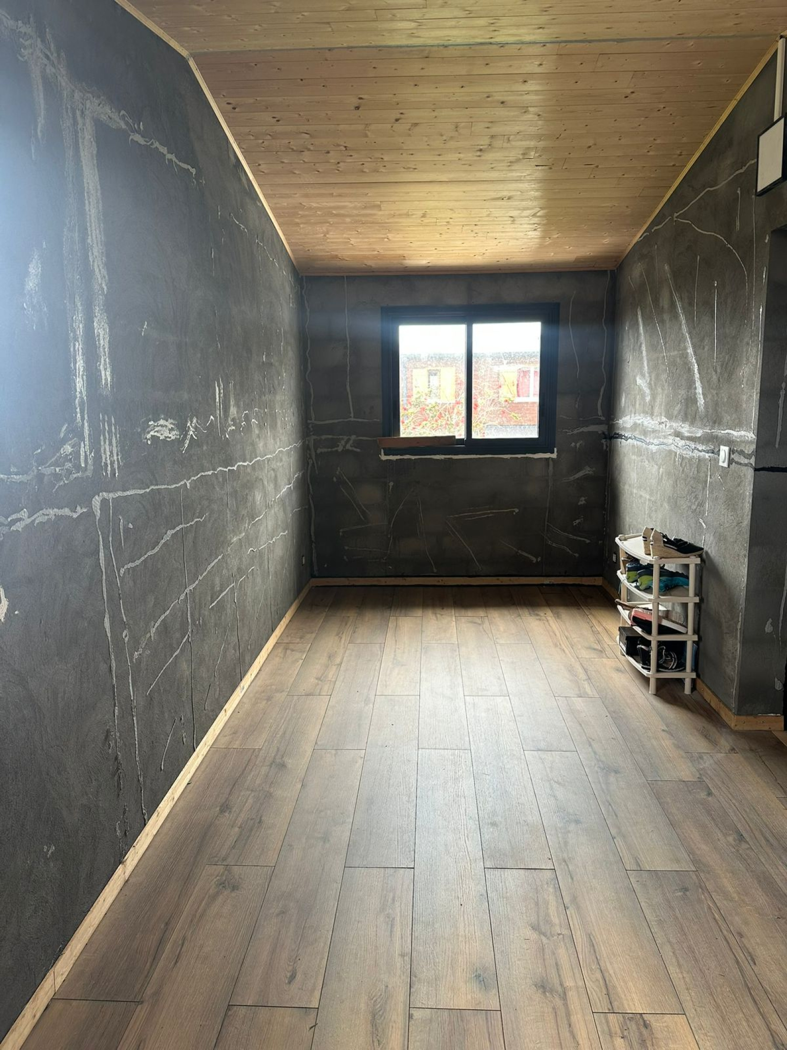 Un salon , une salle à manger avec cuisine ouverte, une chambre, une salle d'eau et un wc indépendant.