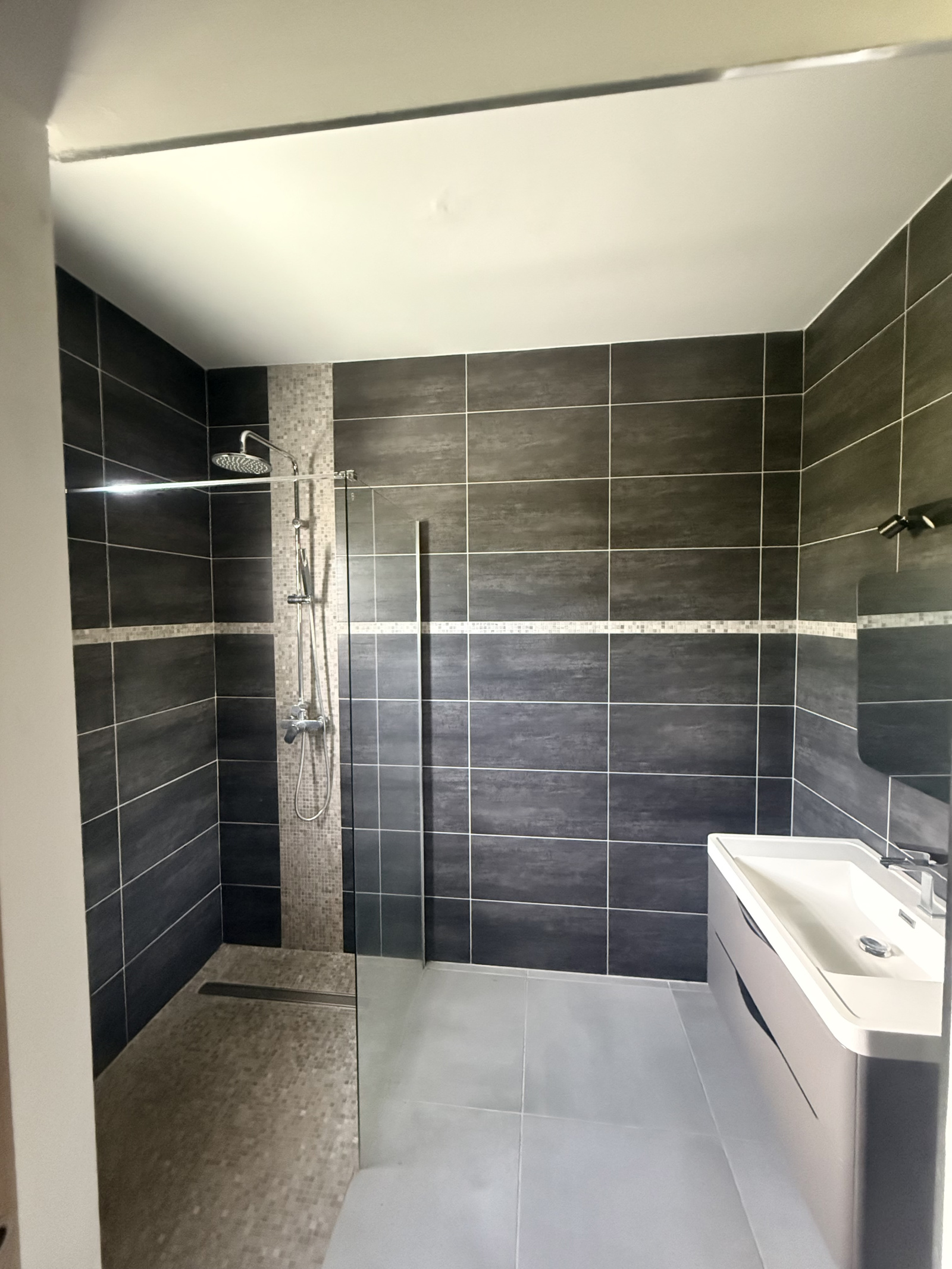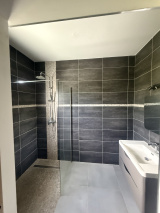 - Au RDC, vous découvrirez un vaste espace lumineux comprenant un séjour/ salle à manger d'environ 42m2, une cuisine, une chambre avec une salle de bains et dressing, un WC, une buanderie ainsi qu'une spacieuse varangue de 35m2.